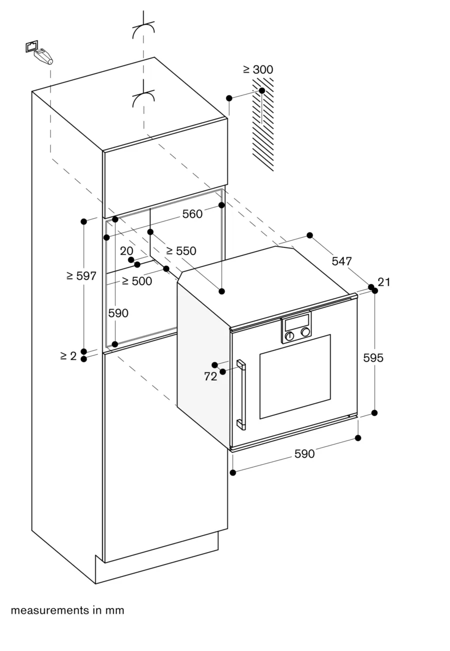 Розетка має знаходитися поза нішею для вбудовування.