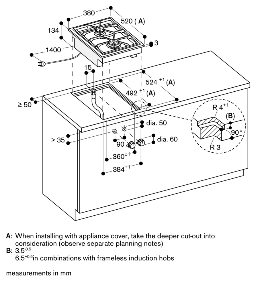 Залежно від типу установки (накладний або прихований монтаж, з кришкою приладу або без неї) конкретне розташування вирізу та положення ручки можуть відрізнятися.