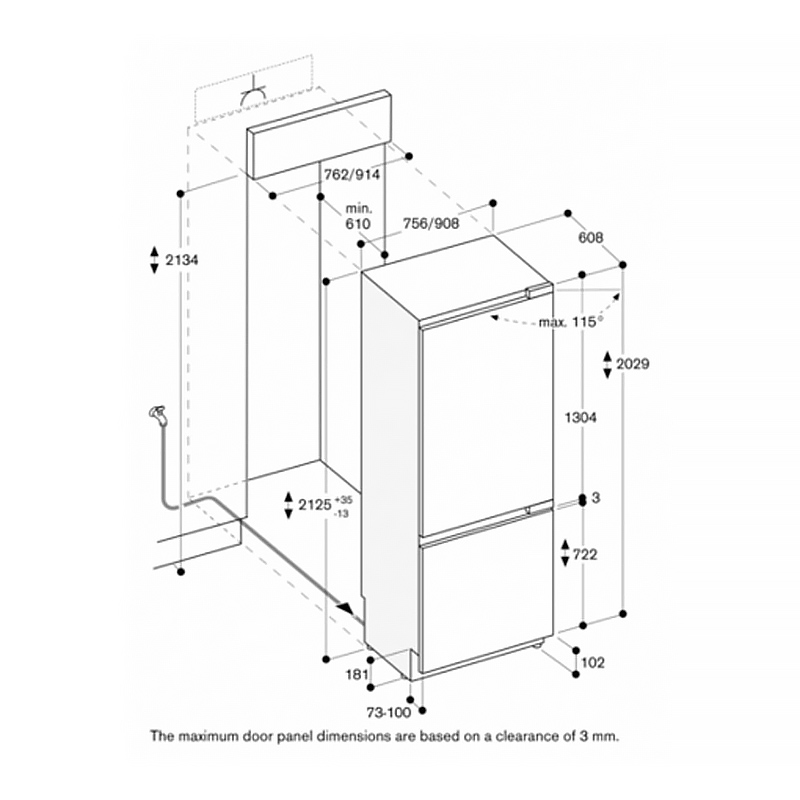 Кут відкриття дверей приладу 115 °, можливе примусове обмеження до 90 °.