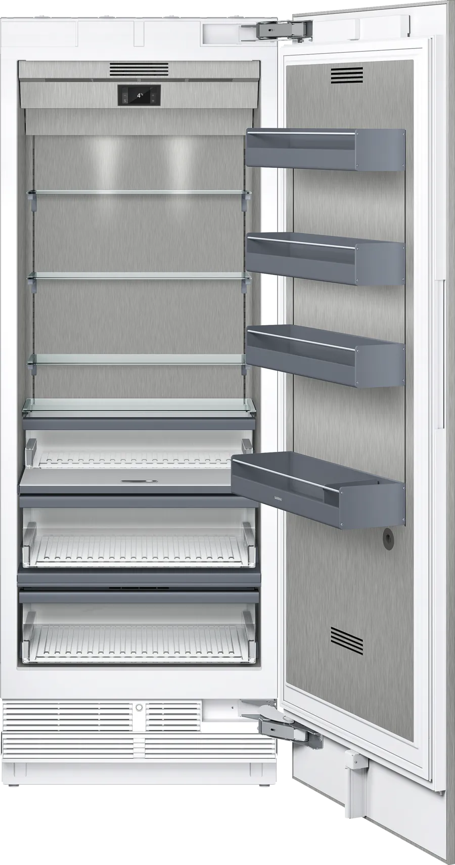 Ящики в моделях RC and RF розташовані на одній висоті. При установці side-by-side скляні полки і полки на двері можна встановити на одному рівні.