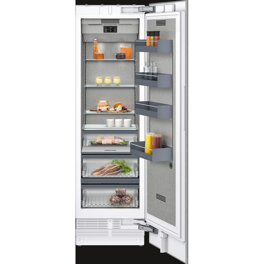 Ящики в моделях RC and RF розташовані на одній висоті. При установці side-by-side скляні полки і полки на двері можна встановити на одному рівні.