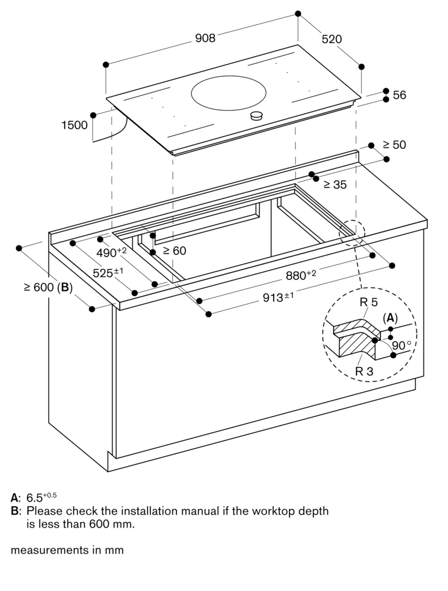 2 комбіновані індукційні конфорки 19х23 см (Потужність 2200 Вт, з функцією Booster 3700 Вт), при поєднанні 38х23 см (3300 Вт, з функцією Booster 3700 Вт).