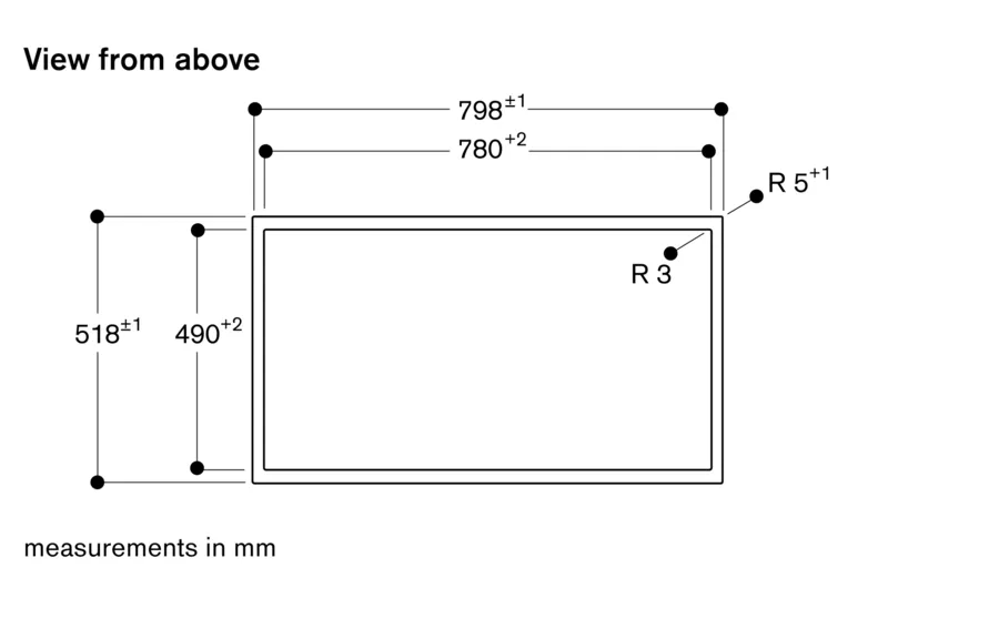 Ширина шва може варіюватися в залежності від розмірних допусків склокерамічною варильною панелі і вирізу стільниці.