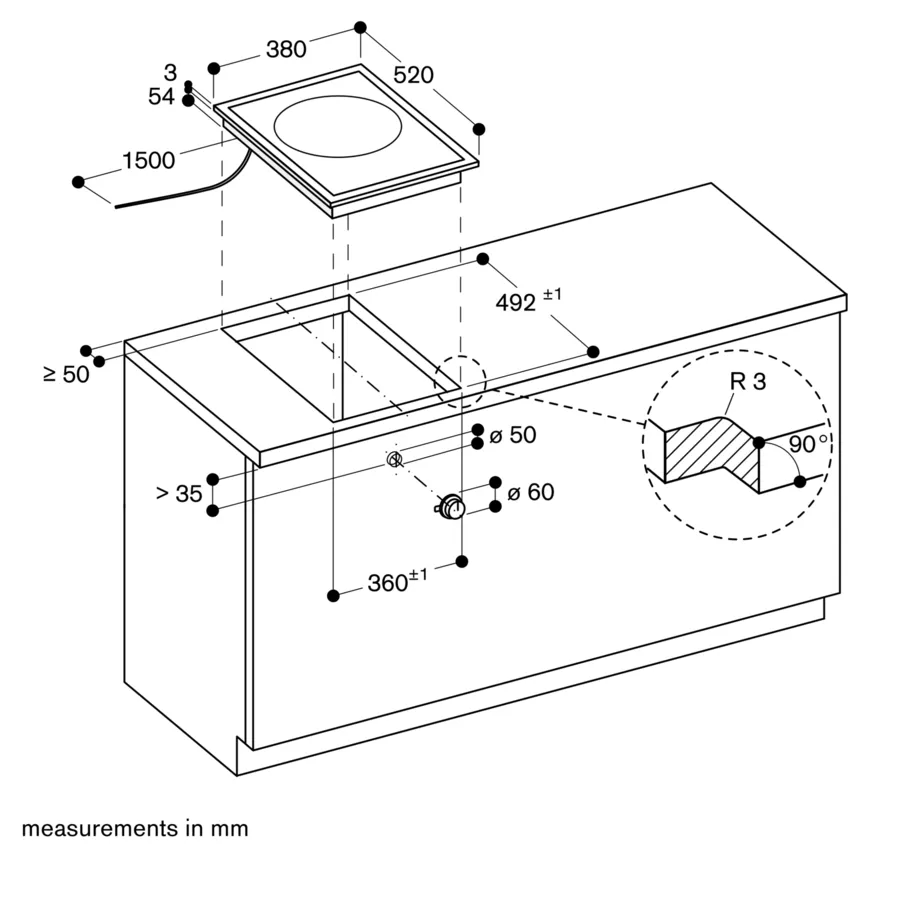 При плануванні вирізу необхідно враховувати тип монтажу (внакладку або на одному рівні зі стільницею).