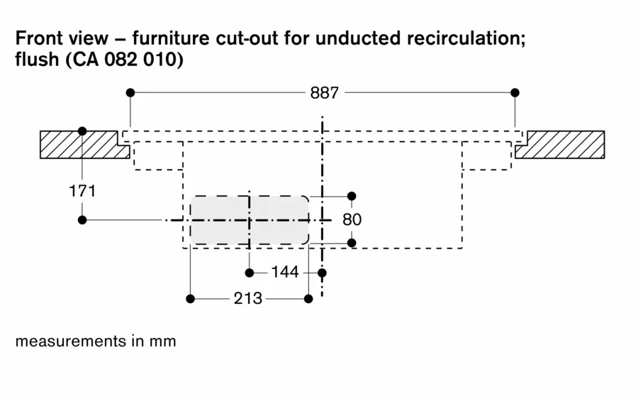 Під час встановлення з CA082010 необхідно передбачити зазор 25 мм до задньої стінки меблів. Для оптимальної роботи ми рекомендуємо залишити зазор 50 мм