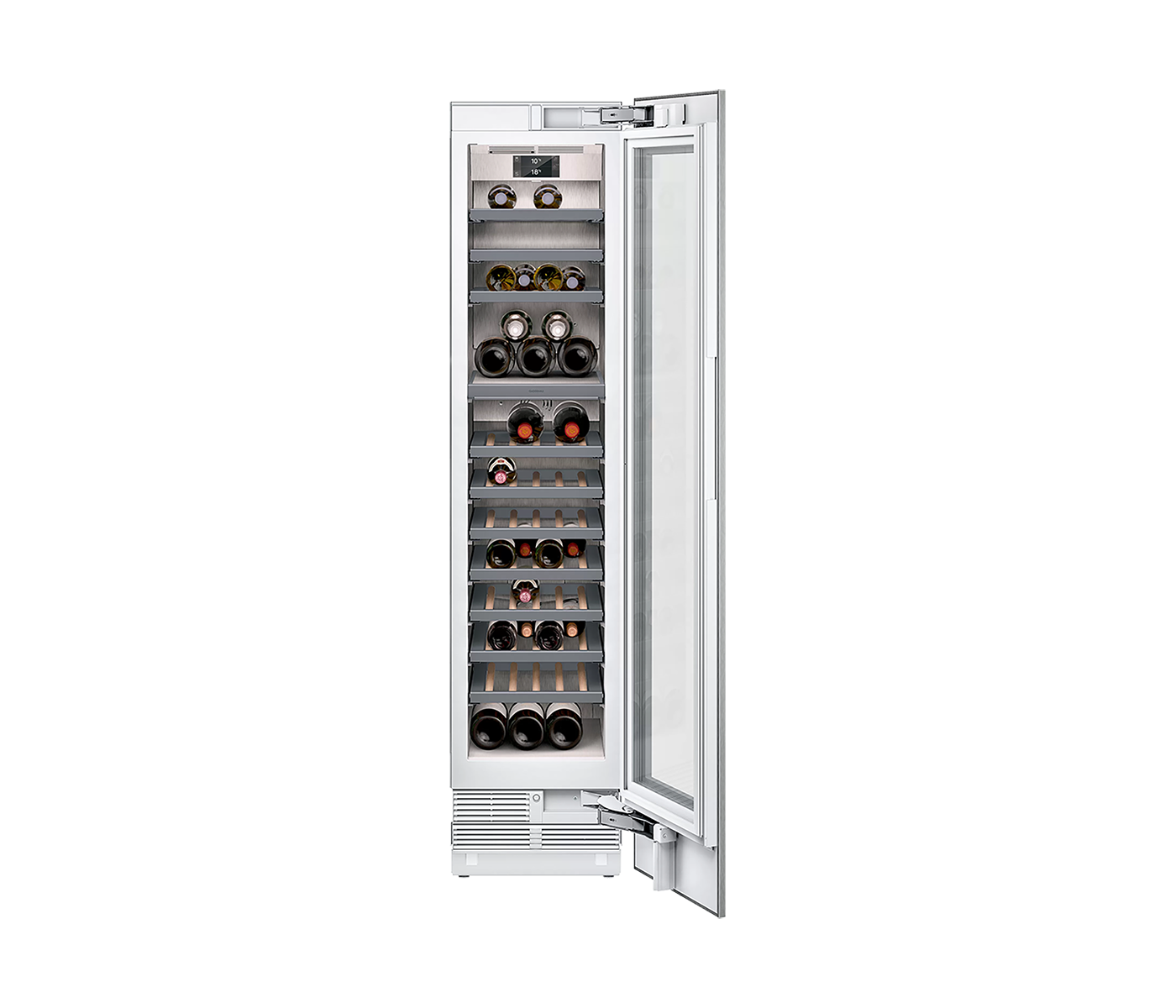 В этой серии представлены полностью интегрированные, встраиваемые модульные холодильники и морозильники, а также их комбинации, которые гармонично сочетаются со шкафами для вина, оснащенными системой климат-контроля. Благодаря концепции приборов cooling wall, сделанных из нержавеющей стали, поверхность которых практически не имеет швов, вы можете сделать интерьер своей кухни весьма оригинальным. После отодвигания массивной двери вашему взору откроется внутреннее пространство приборов, в котором высококачественная нержавеющая сталь гармонично сочетается с антрацитовыми анодированными деталями из алюминия и прозрачными стеклянными полками. Освещение пространства обеспечивается теплыми белыми безбликовыми светодиодами, подчеркивающими минимализм дизайна.