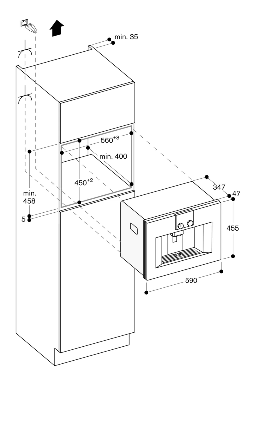 Необхідно передбачити зазор між приладом і фасадом меблів мін. 5 мм.