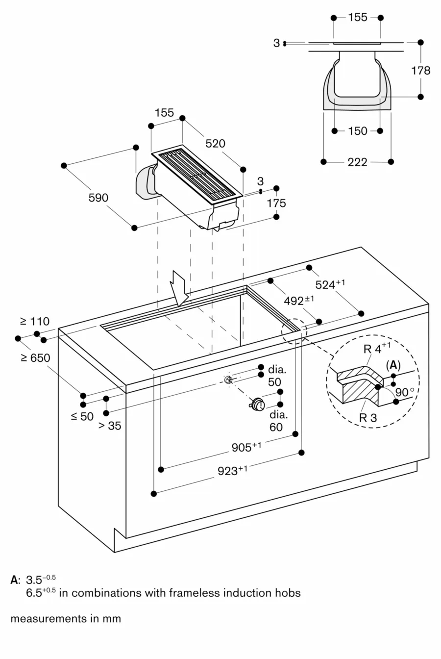 Максимальна ширина варильної панелі між двома VL: 80 см, за винятком моделі CX 482.