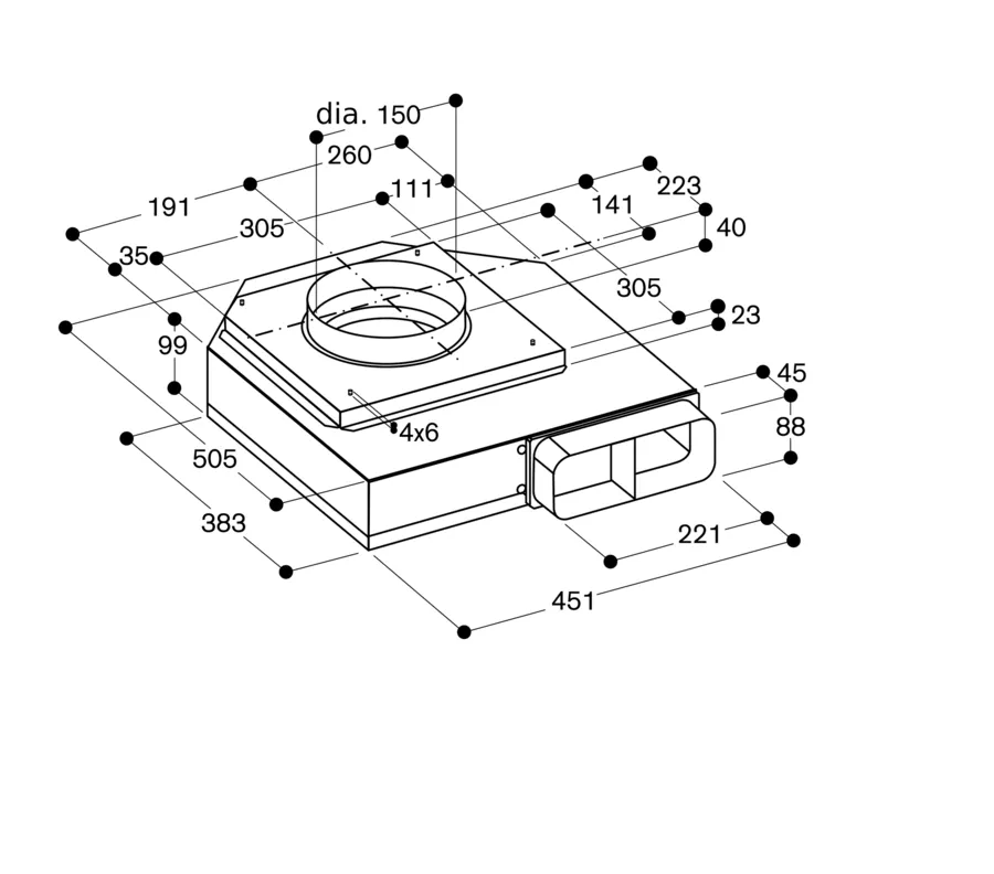 Забір повітря: циліндричний вентиляційний канал 1х150 мм