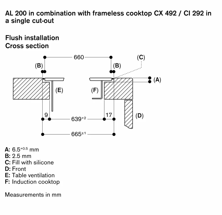 Установка можлива в стільницю, виготовлену з каменю, синтетичного матеріалу або масиву дерева. Необхідно враховувати нагрівання та водостійкість. З приводу інших матеріалів проконсультуйтеся зі спеціалістом.
