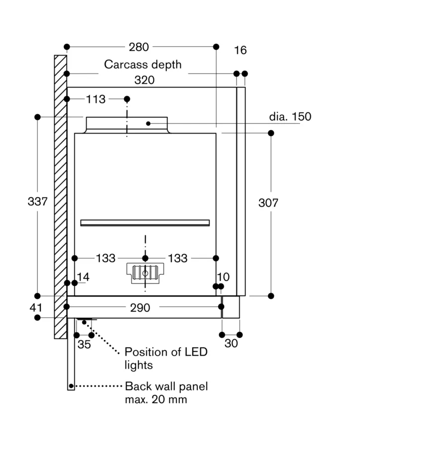 При установке вытяжки для режима отвода воздуха в одном помещении с камином с дымоходом необходимо предусмотреть защитный выключатель для линии электропроводки, к которой будет подключена вытяжка.
