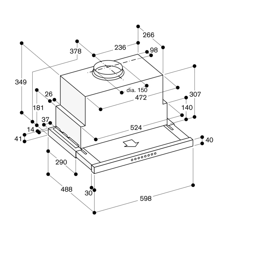 Минимальная высота установки вытяжки над электрической панелью 43 cm.